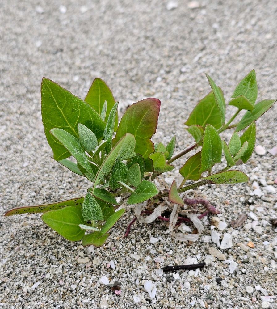 砂浜の汀線エリアにたくさんのホコガタアカザの株が育っています
