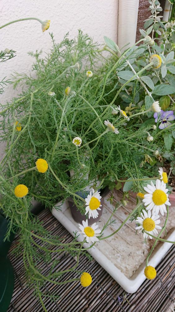 昨年12月に一苗植えたカモミールが、今花盛り😊