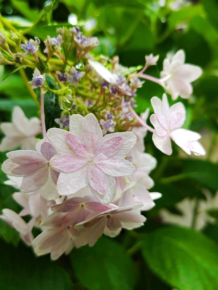 ふっくらした花びらのがくあじさいで、ピンク→グリーン→チェリーレッドと変化するのですが、装飾花がとにかく大きくて優雅でした😊😊