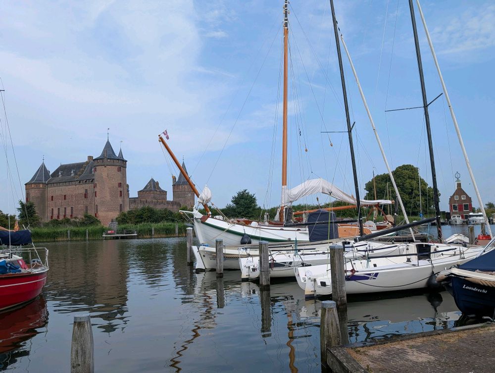 1枚目Vecht川の対岸から見たマウデン城🏰通りすがりの地元の方の話では、木の色のマストに緑のラインのボート⛵️はベアトリクス女王(雅子皇后陛下が体調悪かったときオランダに静養へ招いてくれた方ということで知られてます)のものだとか。プライバシーよ😂ま、このヨットハーバー王立なのであってもおかしくないですが😅