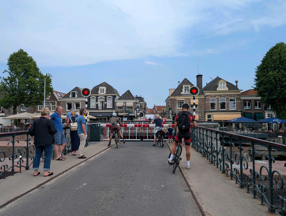 3枚目Vecht川にかかる橋の踏切待ち。電車ではなくて船が通ります⛵️こちらは跳ね橋ではなくて橋の部分が水平方向へ回転するタイプ👈️写真右側に見えてます