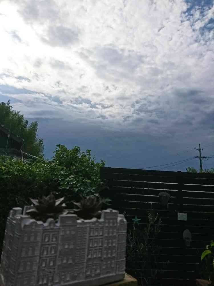 昨日の朝、変な天気と思ったら、今朝は土砂降り、ゴロゴロゴロ§§ピカ!§§ずーとネコみたいに鳴いてる空、風はない、このまま涼しければいいけど、そうはいかないんだろうな(u_u)