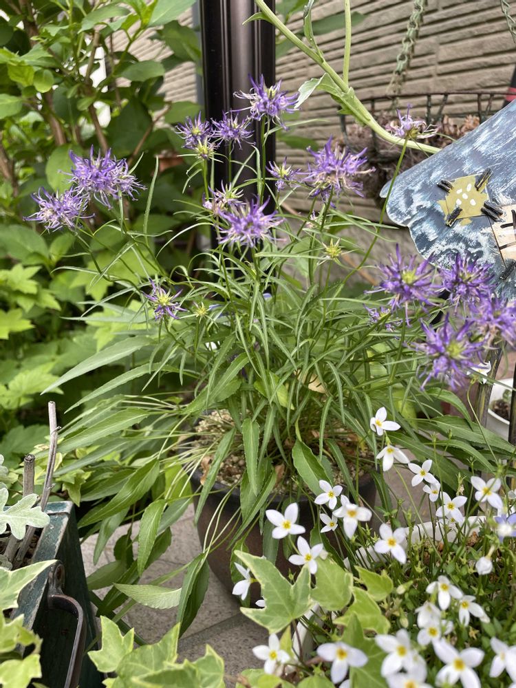 ①②昨年花友さんからいただいたタマシャジンがたくさん咲いています💜