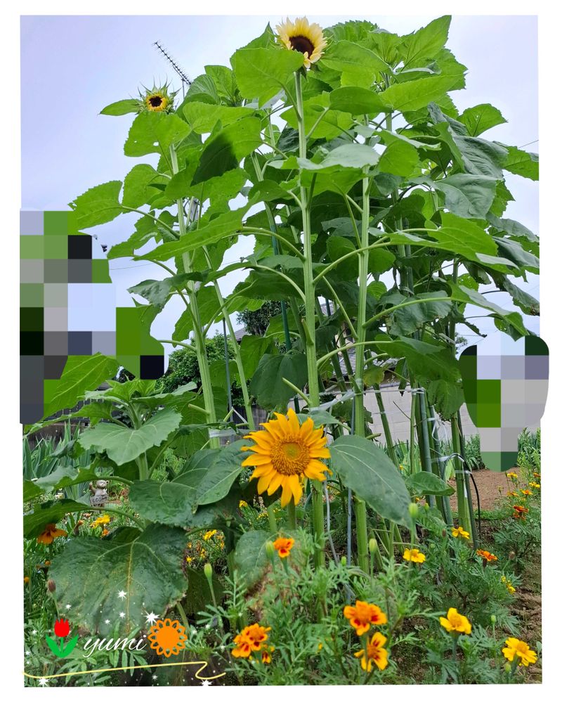 最後のひまわり🌻とマリーゴールド|*>д<*)シュキー