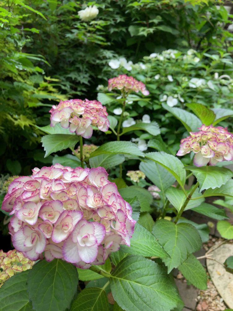 弁先の切れ込みと縁取りが可愛いアジサイ🩷🤍💜