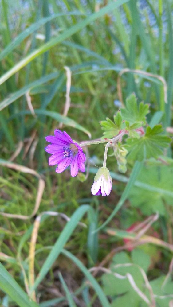 ピレネーフウロ(学名:Geranium pyrenaicum)は、フウロソウ科フウロ属の多年草の一種です。和名は、学名の直訳から。属名は、geranos(=ツル)から出たギリシャ古名。長いくちばし状の果実をツルのくちばしにたとえたものとか。種小名は「ピレネー山脈の」の意。草丈は50cm程度になります。全草は毛深く、茎の基部は木質化します。茎は直立するが上部で良く分枝をし、草丈の倍程度の横方向へ広がりを見せます。株元から根生葉を出し、ロゼット状に広がりを見せます。茎葉は、ほぼ円形で、縁部は5~7裂し、茎に対生します。4~7月頃に花茎を出し、径1㎝程度で紅紫色の5弁花を見せます。各花弁は先端部で2深裂をするために、遠目には10個の花弁があるようにも見えます。花後には径5㎜程度で褐色の蒴果をつけます。本種は、地中海沿岸地方原産種ですが、ヨーロッパ各地、特に北欧地域では帰化状態にあります。更に、北米でも帰化状態にあります。我が国でも、北海道で帰化状態にあることが確認されています。