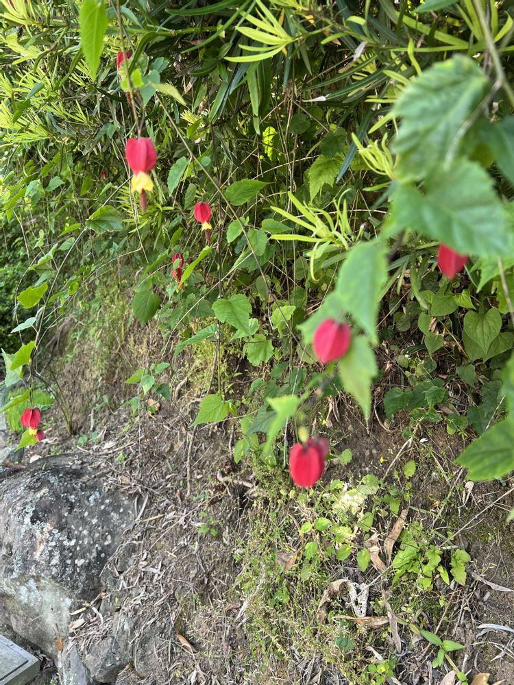 緑の法面にたくさんぶら下がって、とても目立つ花👀