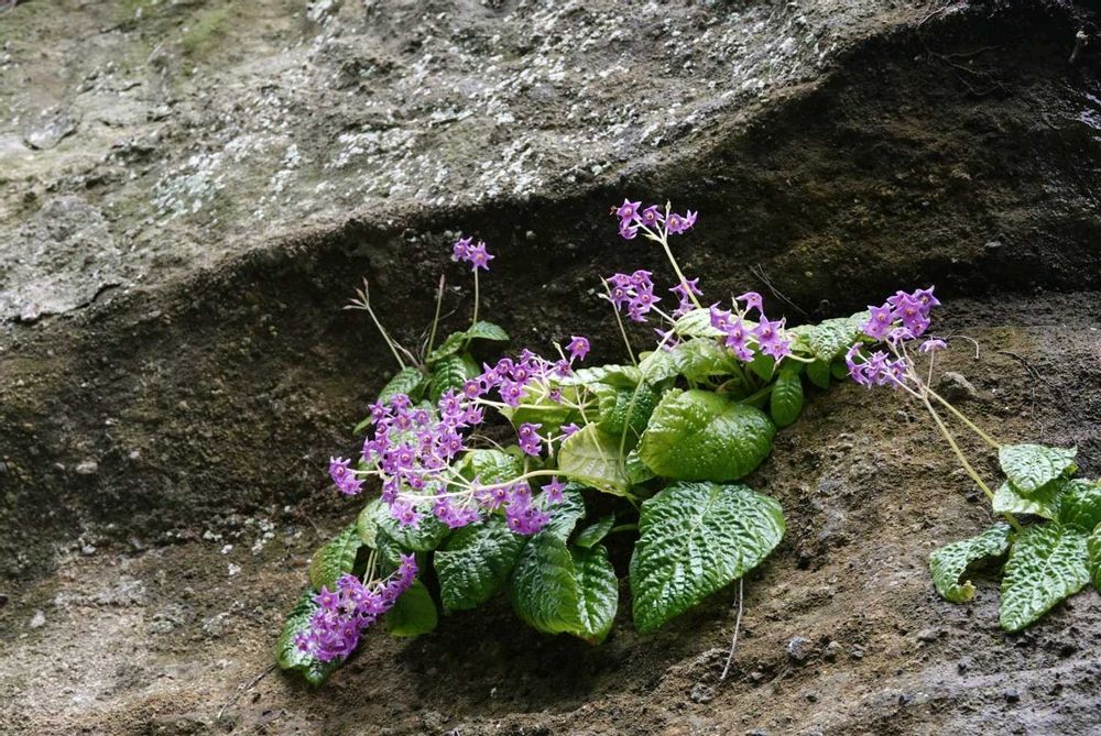 これぞイワタバコと言わんばかりの岩盤に見事に咲く花。