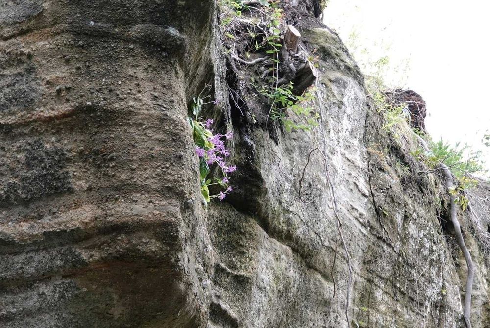 美しい😍岩盤にもマッチ、それにしても凄い所に咲いていますね😱