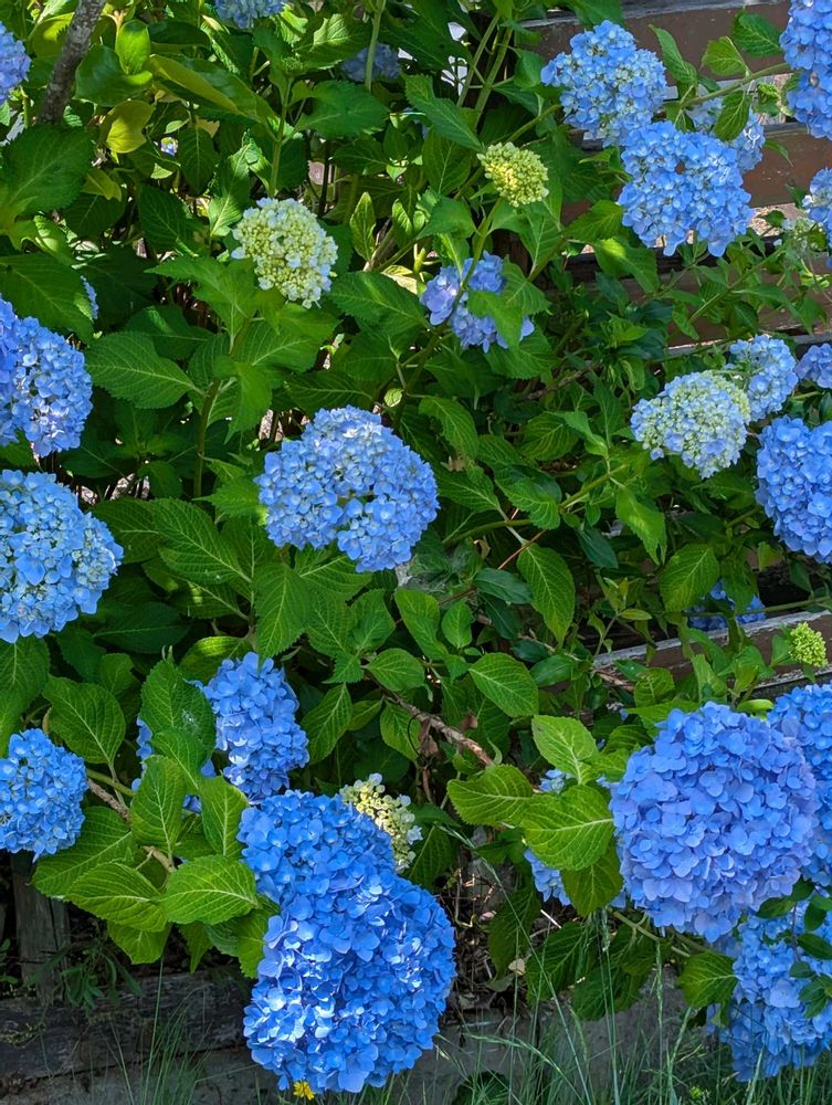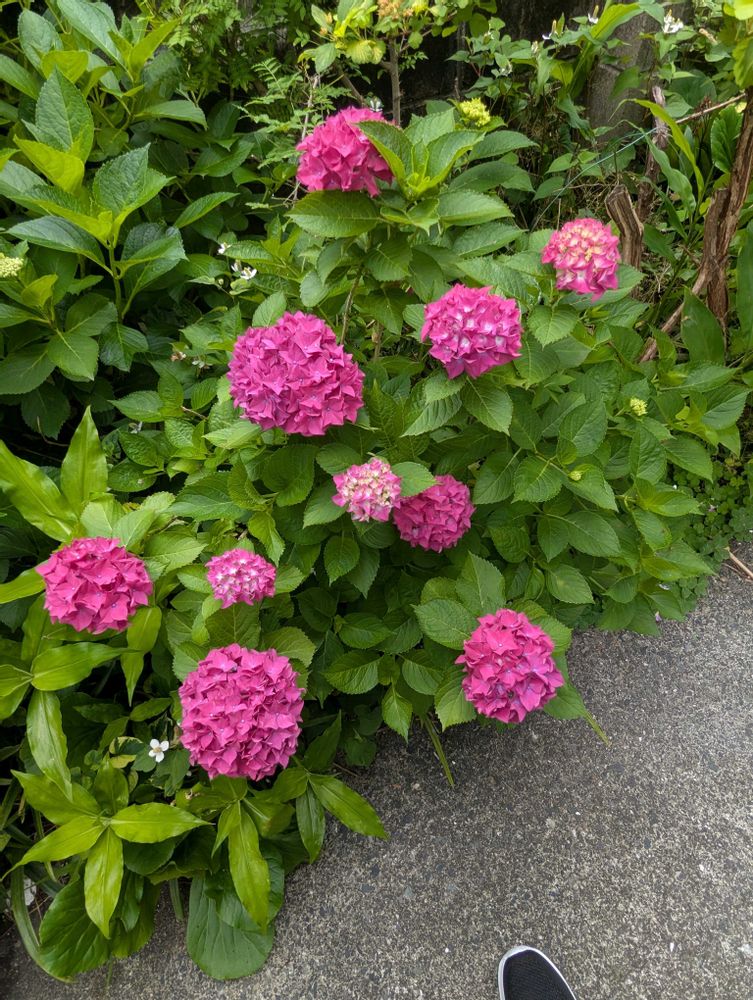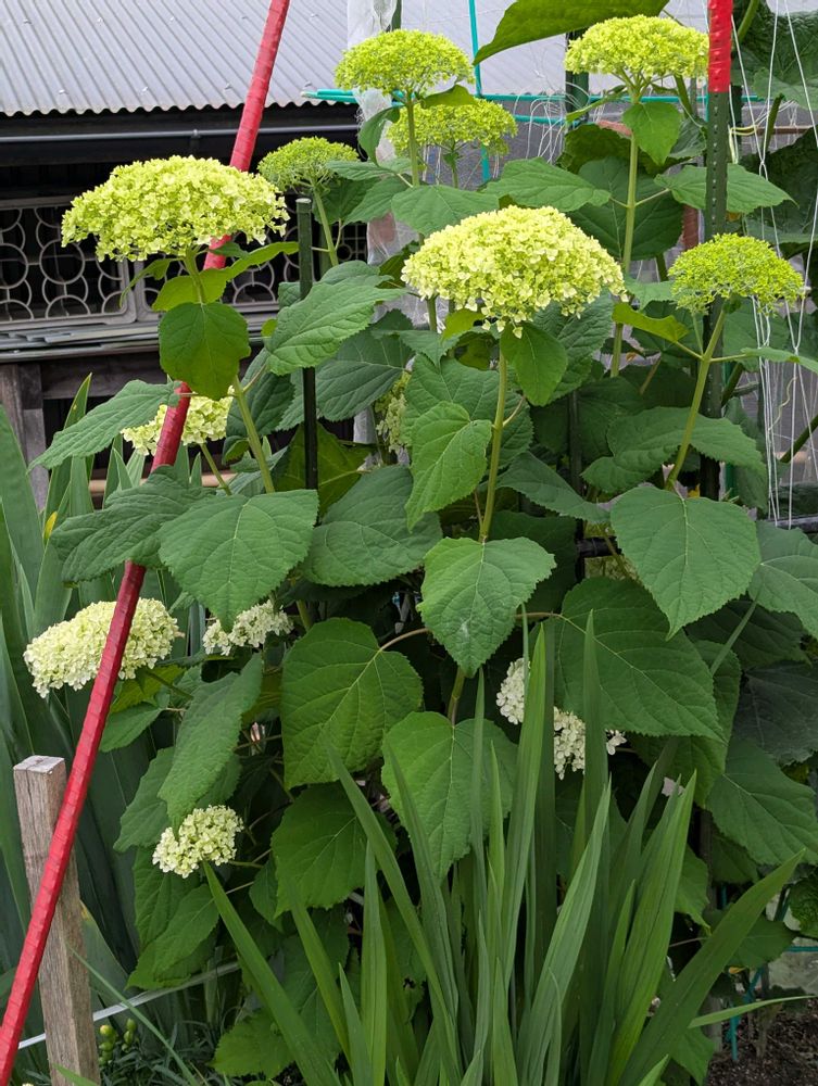 自宅の庭のアナベル〜他アジサイどの花もカワユイね🏵️私は紫大好💜💙