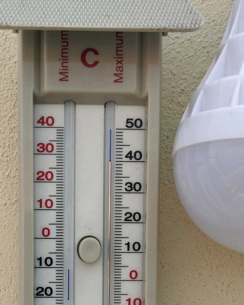 4. すでに真夏並みの暑さ🥵 日の当たらない北向きの壁に掛けてあるテラスの温度計🌡️40度でした。先が思いやられるなぁ。