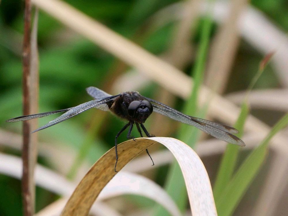 ショウジョウトンボがたくさん翔んでる中で黒く艶っぽい個体がこの時期、それ❗👀だとすぐ判ります。名前の由来は羽化したての色が似ているから。(ショウジョウトンボ♀をもう少しジミーにした感じです💦)
