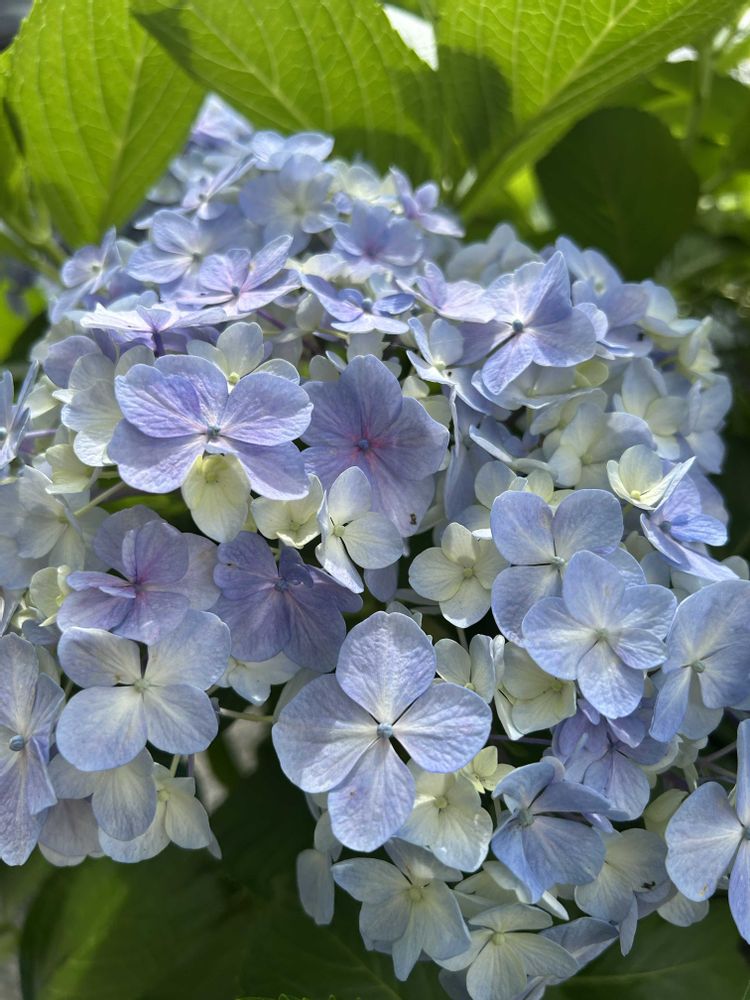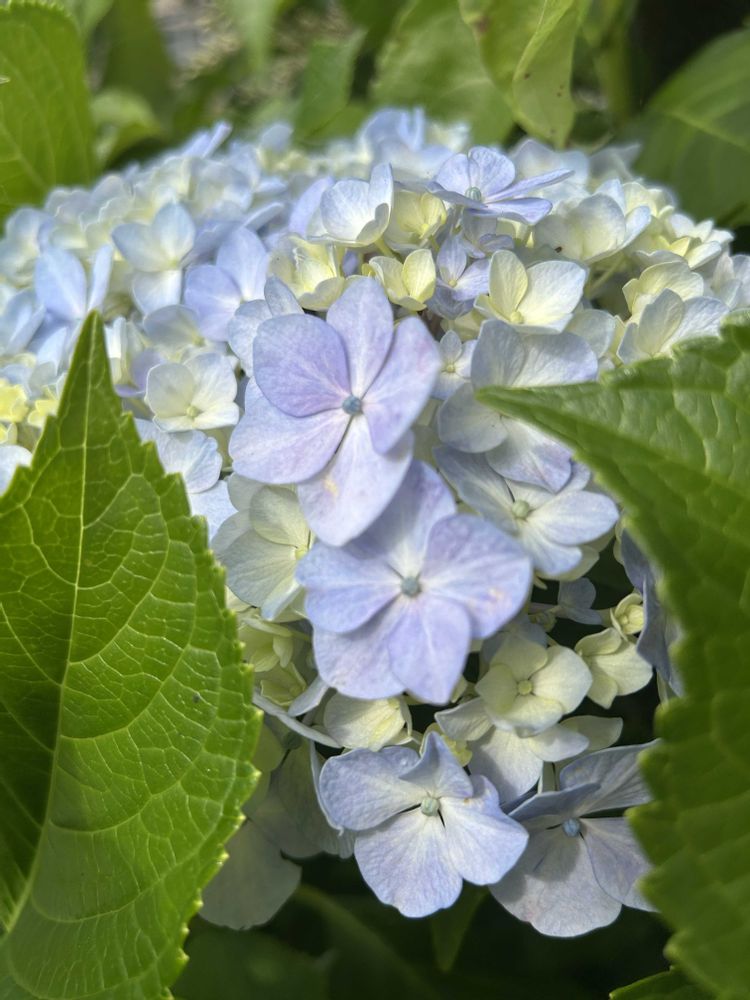 葉と葉の間から見えるアジサイさんいいですね👍✨