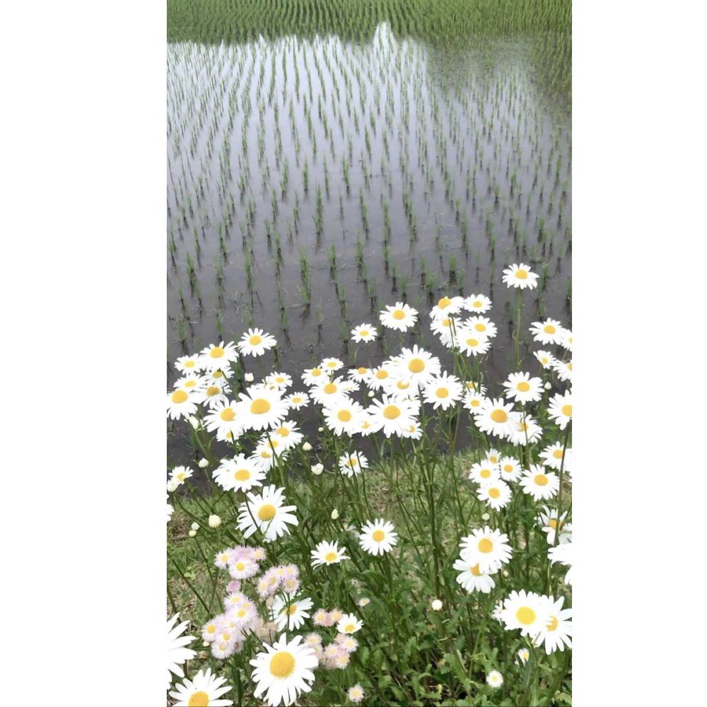 そして、田植え直後の水面に映る風景の傍にも🌼🌼 (写真3枚目)