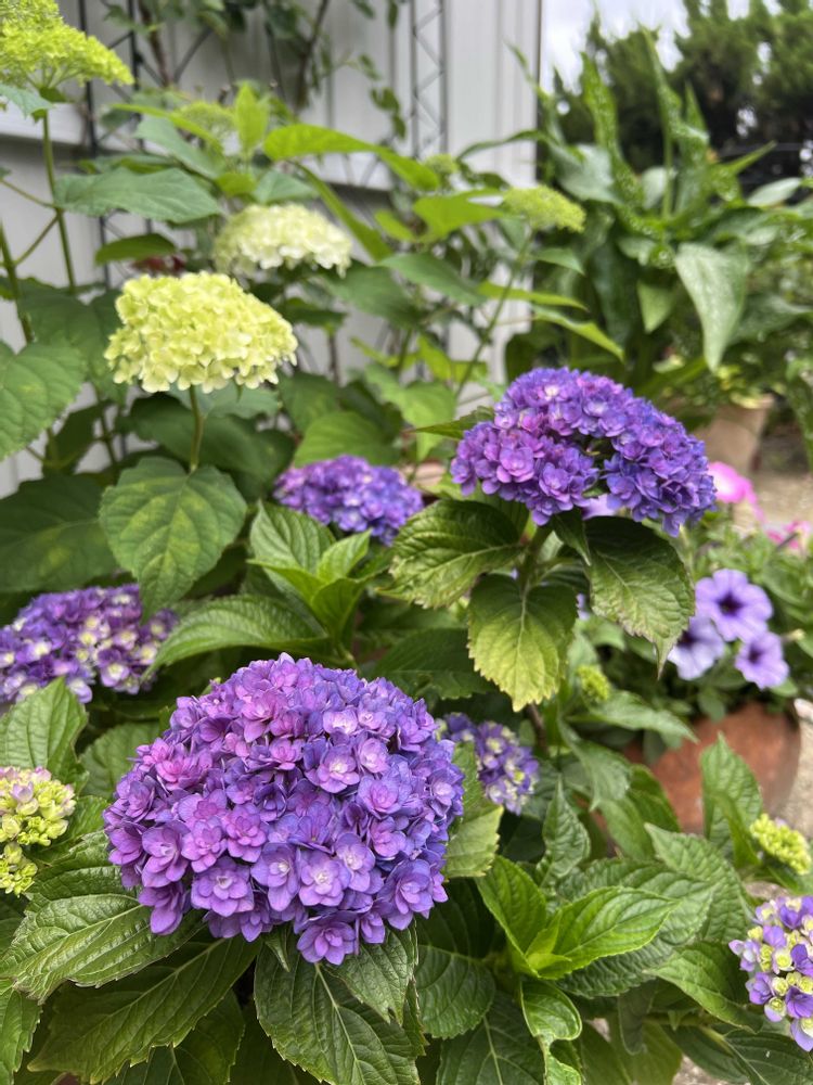 頂いた時は肌色でしたが 紫陽花の色分け出来る専用肥料で紫と赤に遊んでみました。