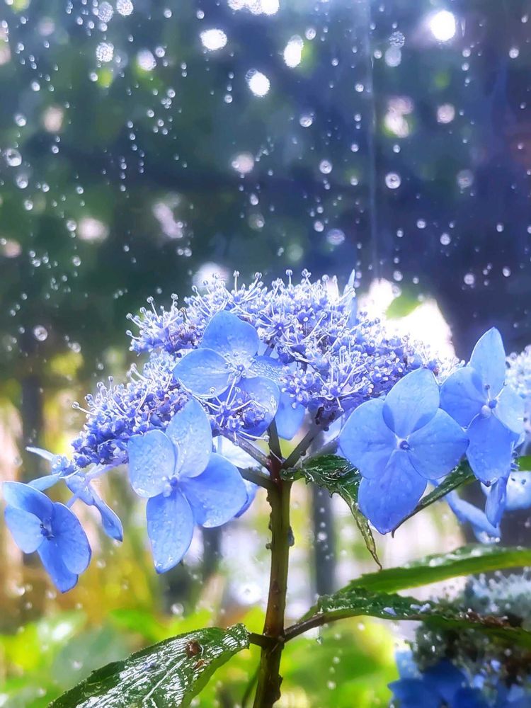 紫陽花と雨の雫のコラボが素敵ですね✨️✨️🩵