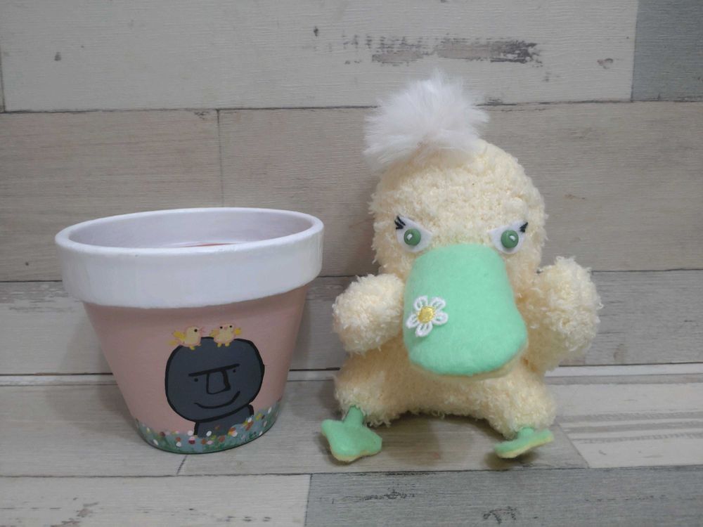 モアイのリメ鉢と、可愛いハシビロ子ちゃん