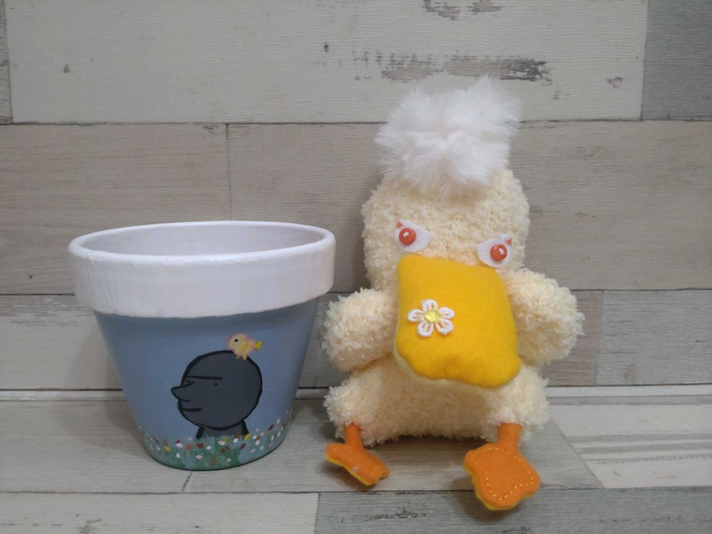 モアイのリメ鉢と、可愛いハシビロ子ちゃん