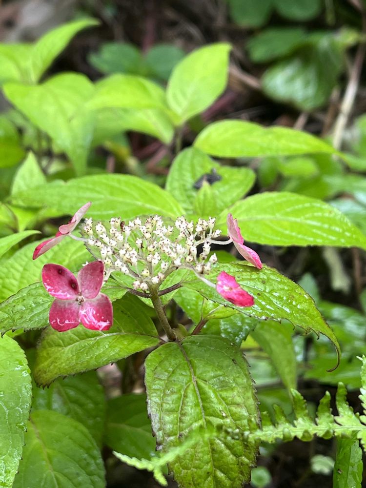 先月ヤマアジサイ 紅 を小さな森の中へ仲間入りさせました⋆̩☂︎*̣̩☂︎♬.*゚