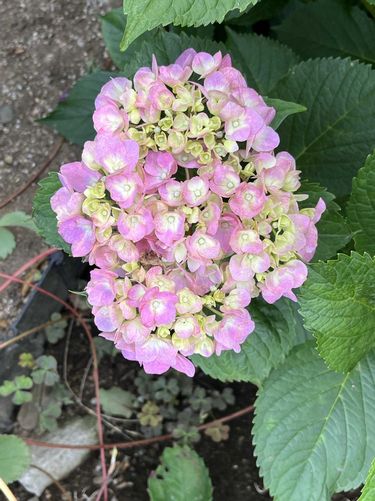 おはようございます。曇り、22.3℃、10:20ちょうどいい。紫陽花、貴重な2輪が色づき始めました。ミニトマト3種初収穫しました。レタスサラダミックス、早生オクラ、地這きゅうり、カモミール、8日目発芽してました。青しそ2世68日目、エゴマ69日目初収穫しました。🥰😍😻😋☺️😸