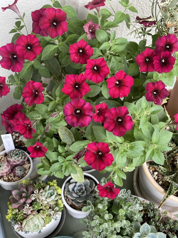真っ赤なペチュニア、カット後にまた咲いてくれてます♥️