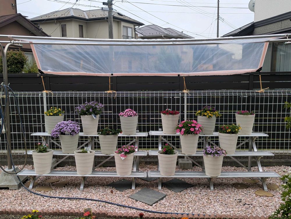 物干し台にターポリン(2499円)を引っ掛けて雨よけ設置!