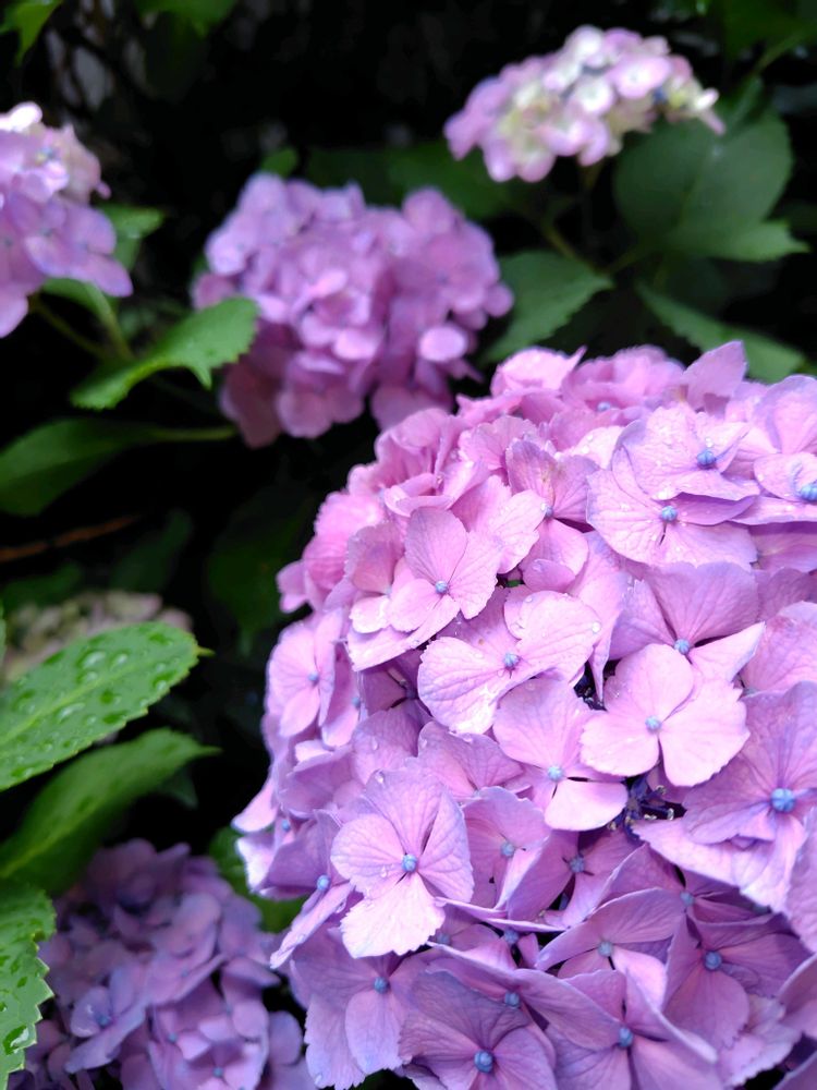 雨上がりの今朝の庭の紫陽花を🤳☔️