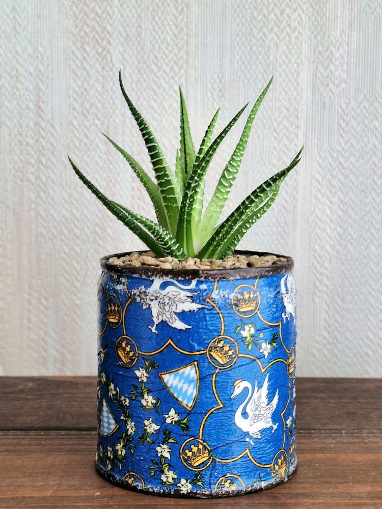 わかりやすいように、白鳥のリメ缶に白鳥を植えました❕😄👍