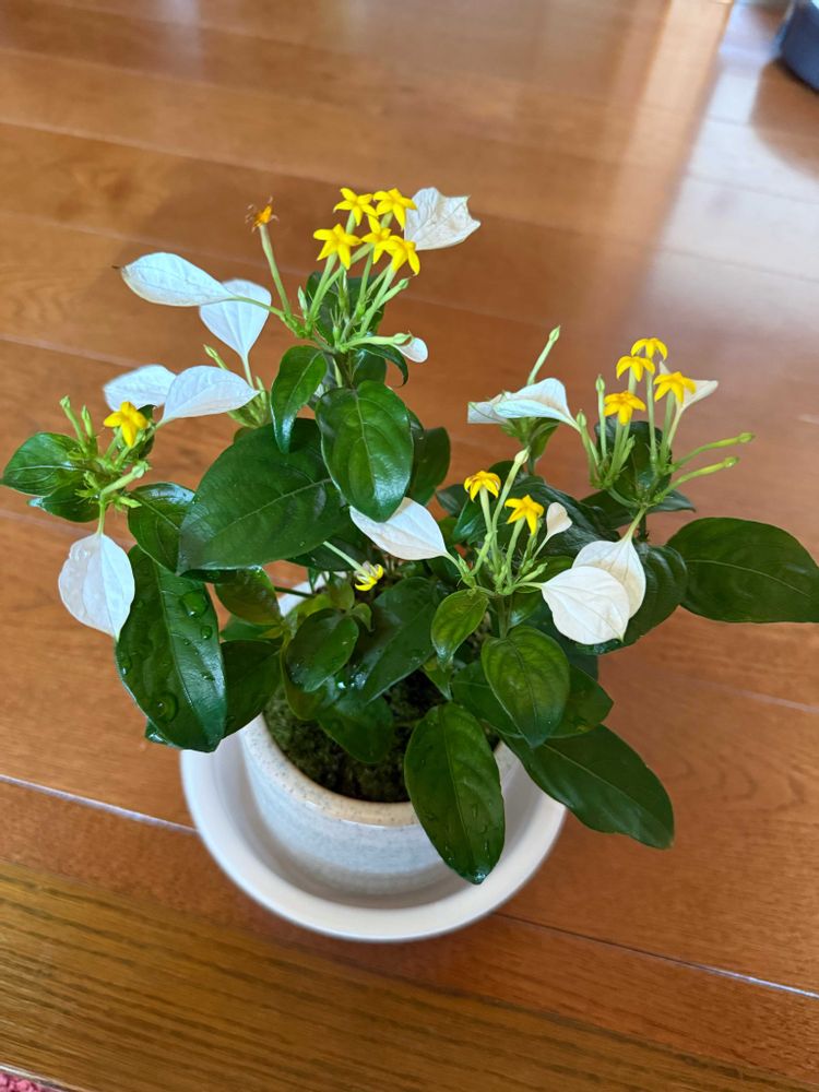 私的には初めて見る花でしたが…緑の葉に白い葉っぱらしきのに黄色🟡の花?が咲いていました。🤗