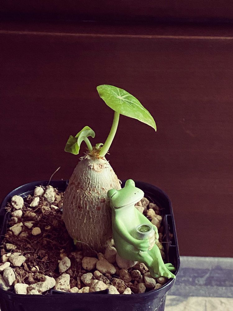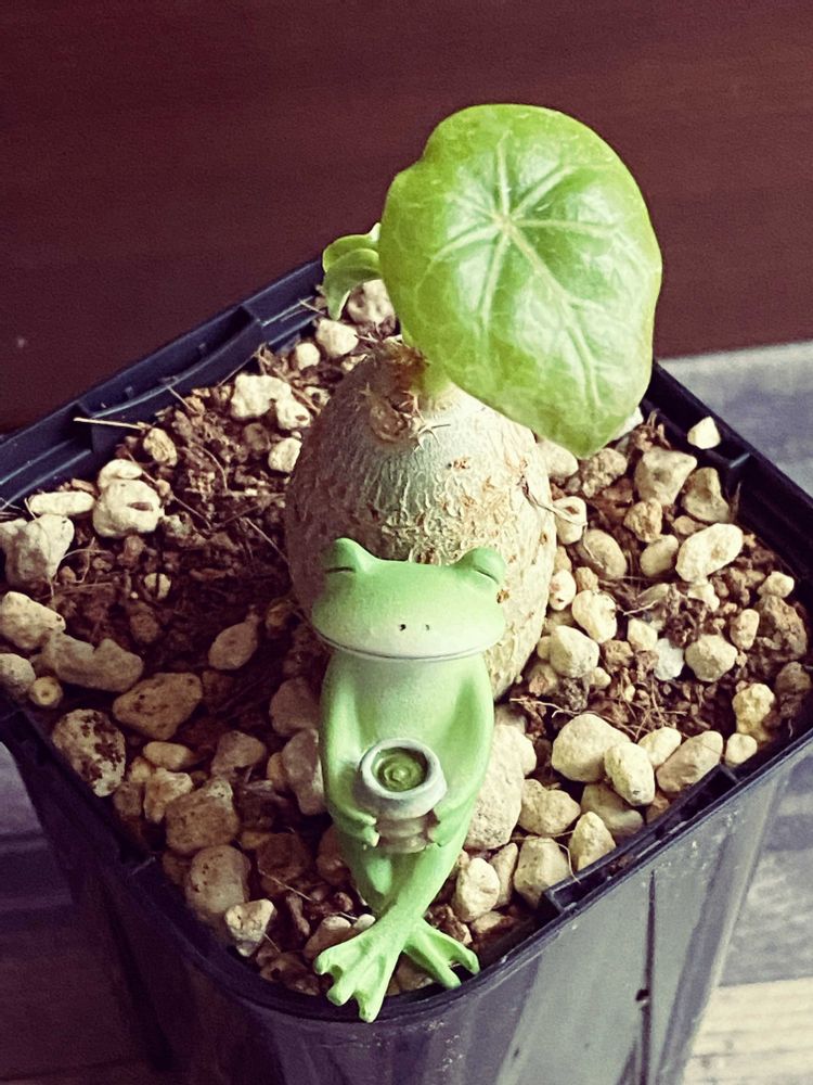 葉っぱがまだ小さいから🐸は雨をしのげてない感じですけどね🤣
