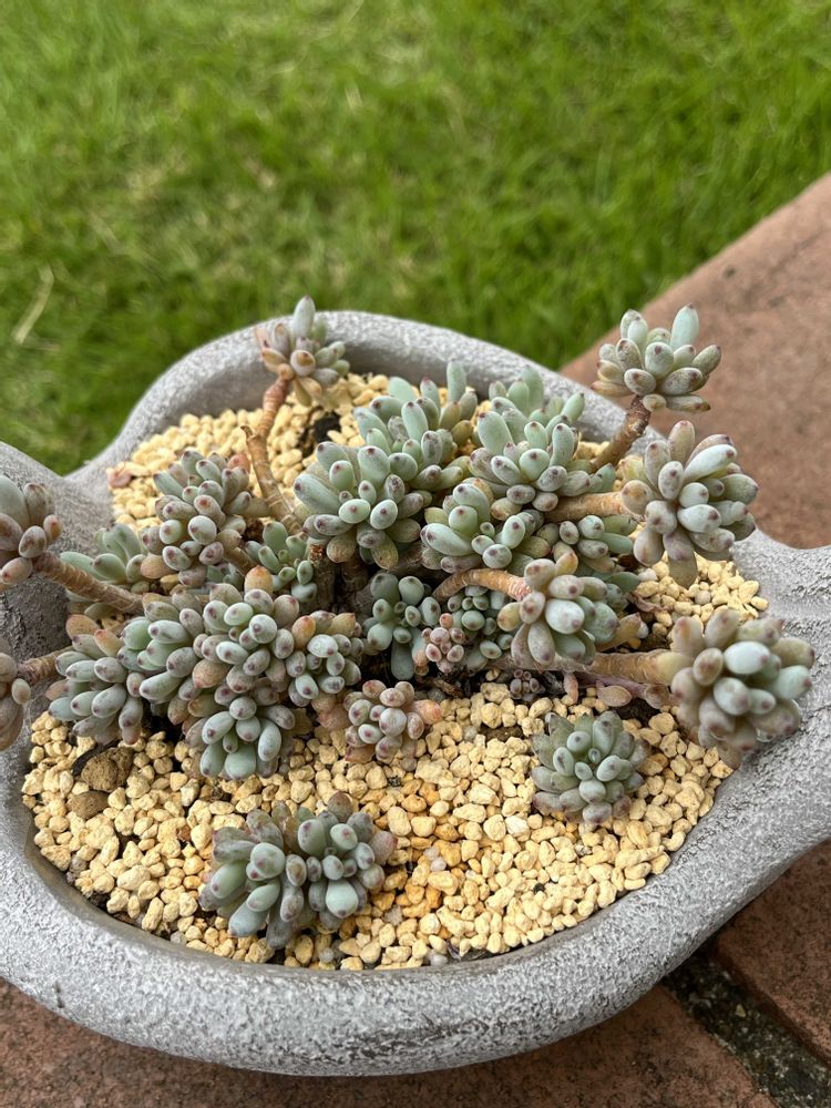 小さな庭,ブルービーン,多肉寄せ植えの投稿画像