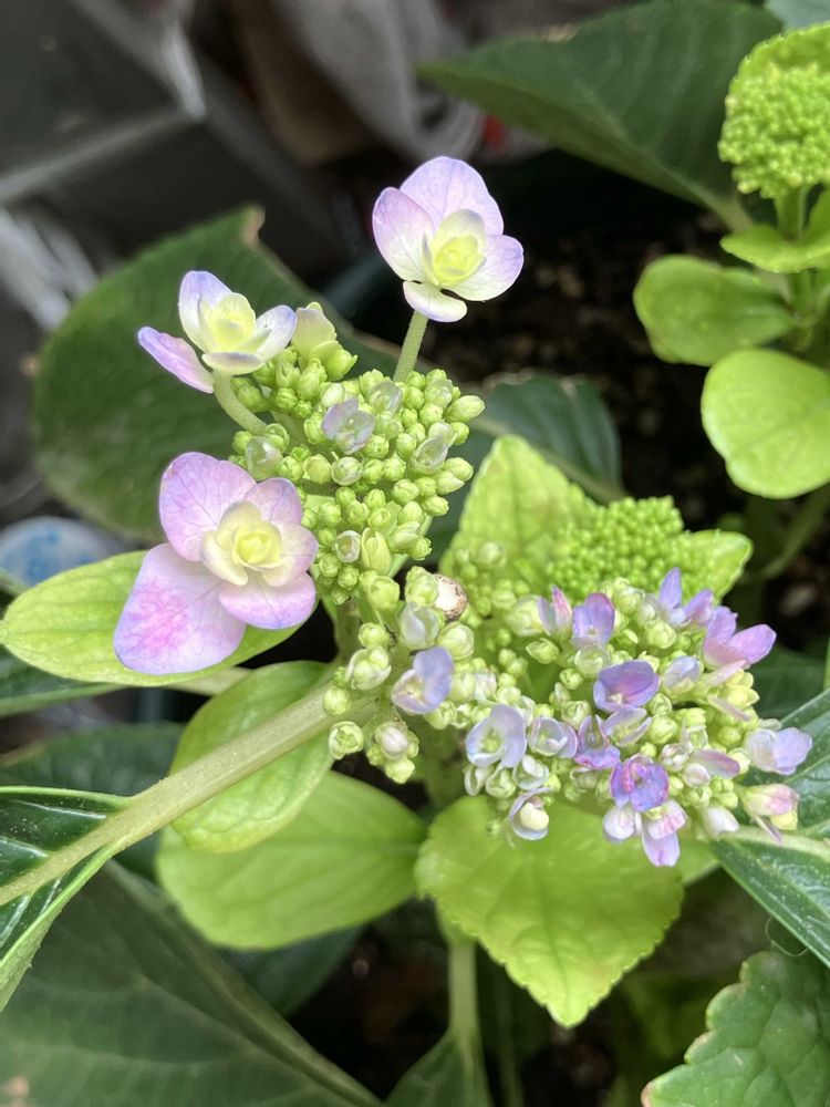 ① 早咲きアジサイ・初恋 もう次の蕾ちゃんが出来てます😊💙💜🤍