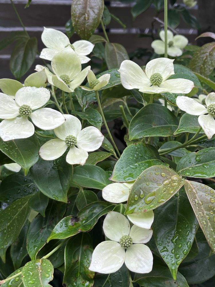 ④⑤梅雨の頃は常緑ヤマボウシのお花が嬉しい😊