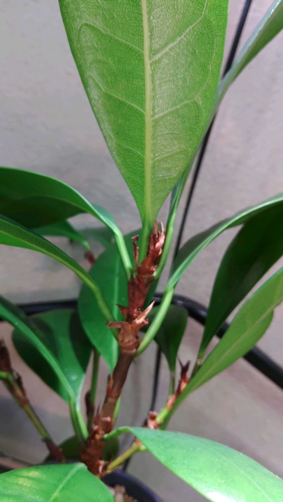 リラータのところでも書きましたが、托葉が残ります。葉も肉質でフィカスっぽくないと感じるかも知れませんが、葉にはリソシスト(白い点)が確認できます。
