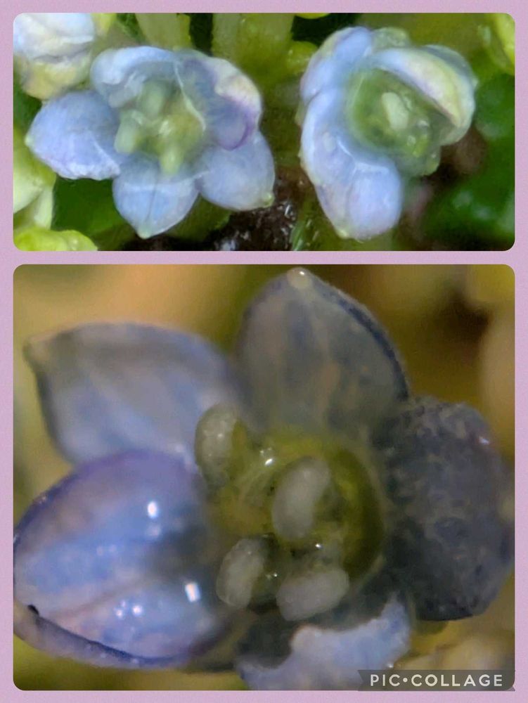 ④中心部は3㎜ほどの5弁の両性花です