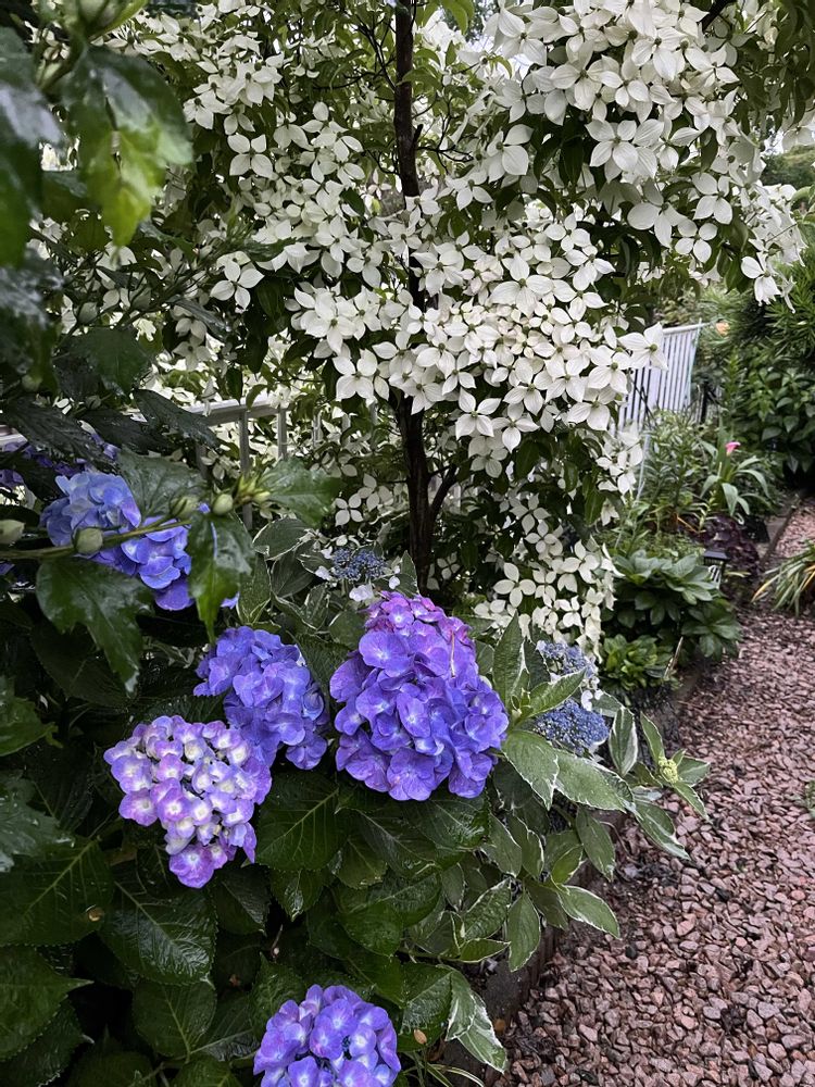 今年もヤマボウシが綺麗に咲いてくれてアジサイとのコラボが綺麗です🤩