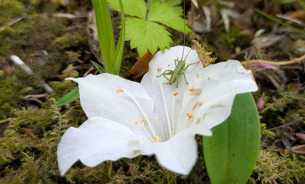落ち花びらにバッタ赤ちゃん。
