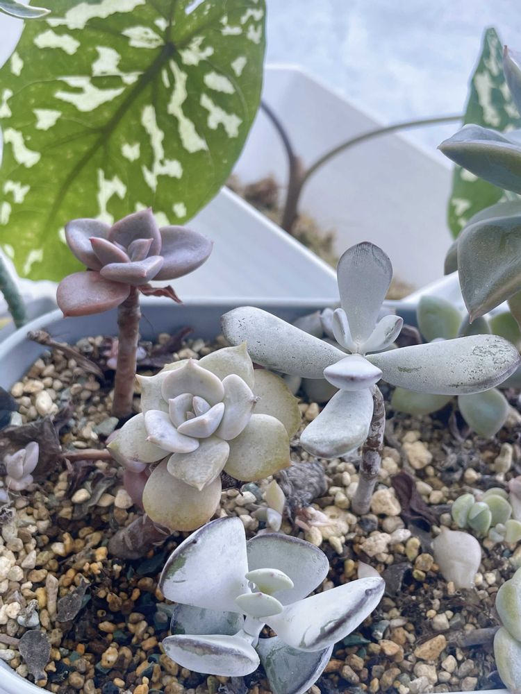 9月中旬に強風で棚が倒れてしまいました😭 折れたり葉が取れたりスカスカになった子達を カットしてまとめました 元気に成長しているので経過を記録したいと思います❗️