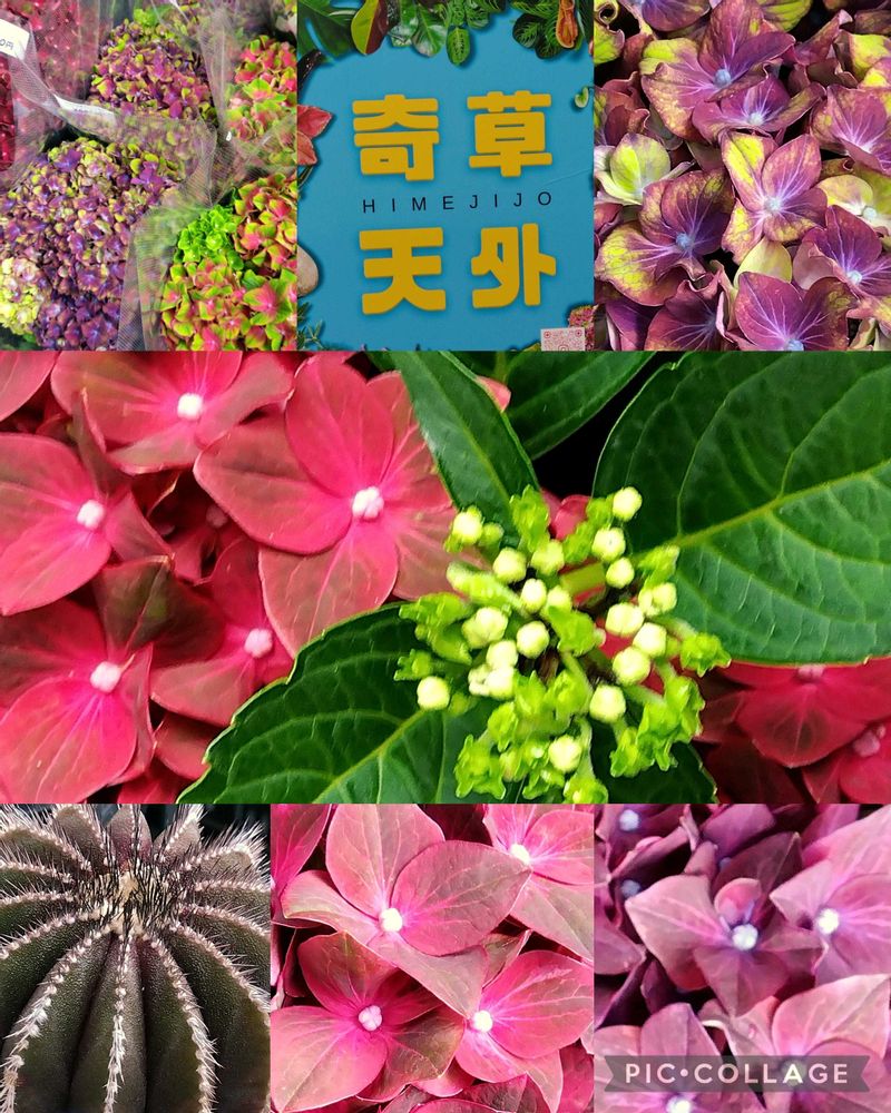 ①先日 イベントで🔴色紫陽花👀出会いました 育種家さんのオススメ✨みたい~🔴の色味を出すのが難 しい‥お話 聞こえてきました👂️♡