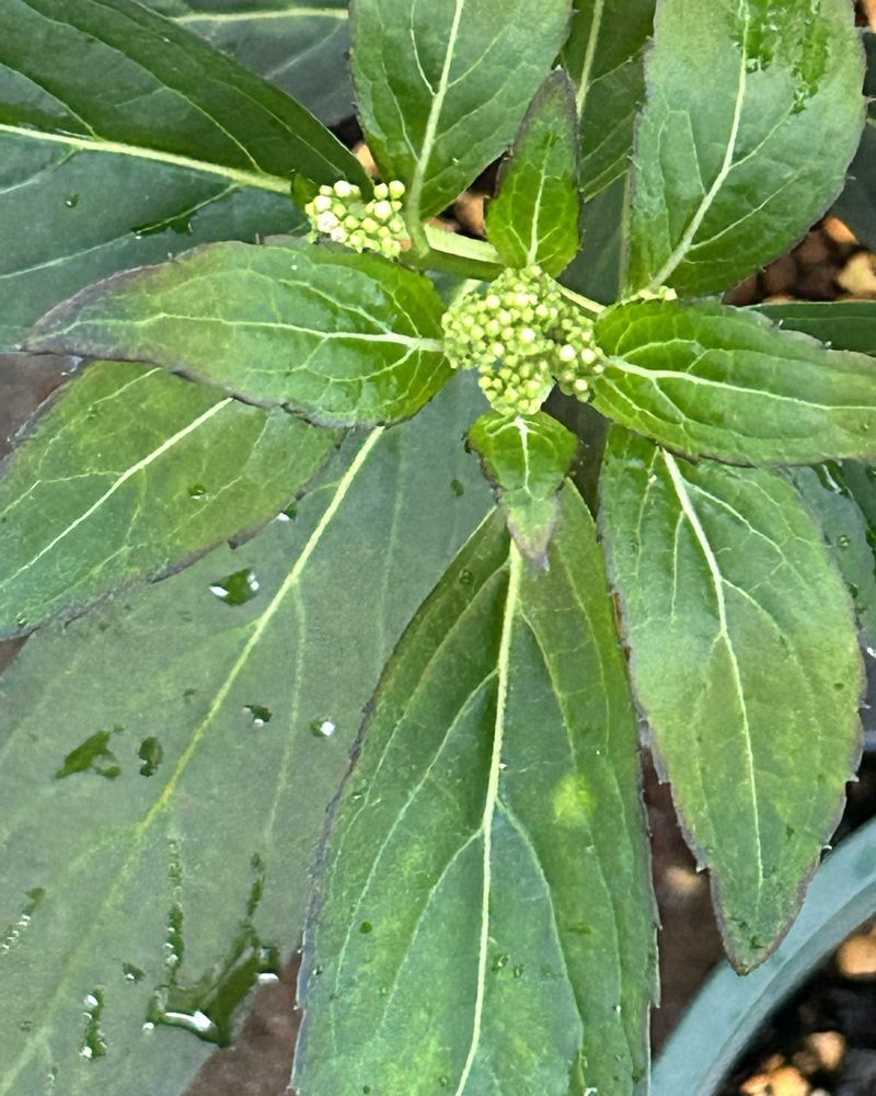 ④今年購入の常山アジサイ、ブラックバイバーです🌸🖤 常山紫陽花の妖艶でシックなカラス葉品種。ブルーの実もなります💙