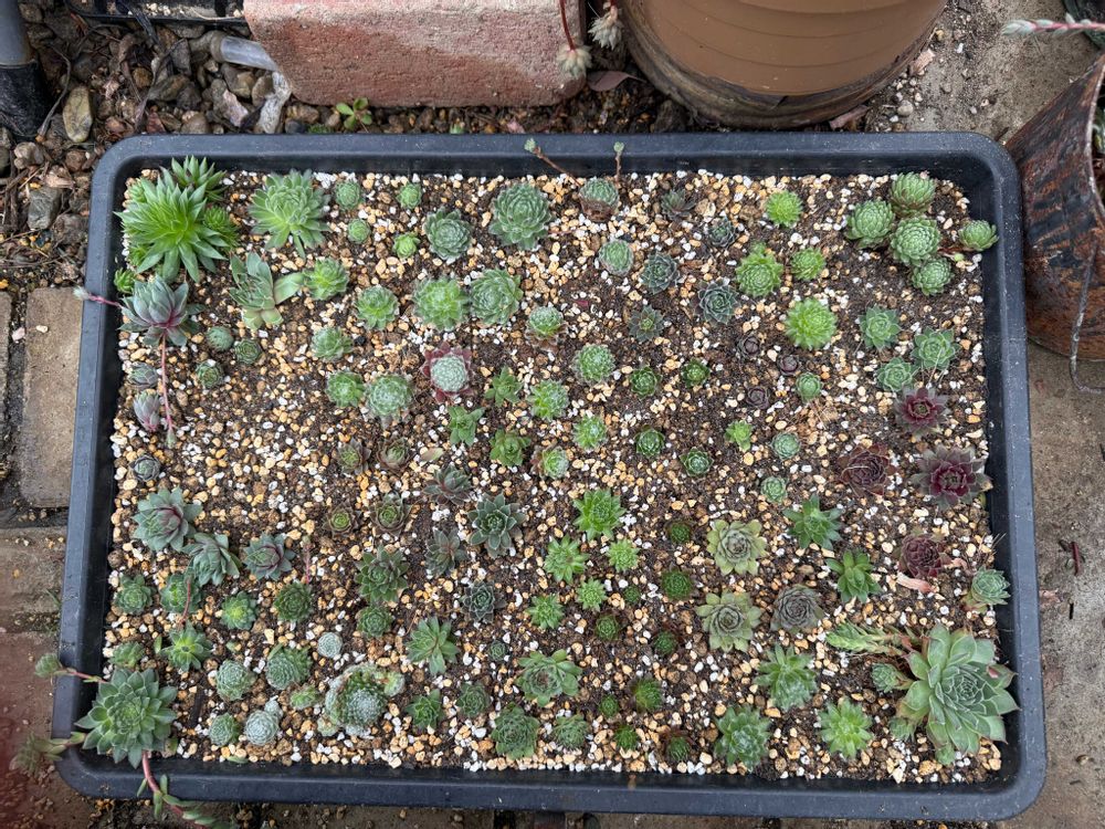 多肉小屋で北側多肉小屋のセンペルの間引きと子株取りをがんばりましたー!