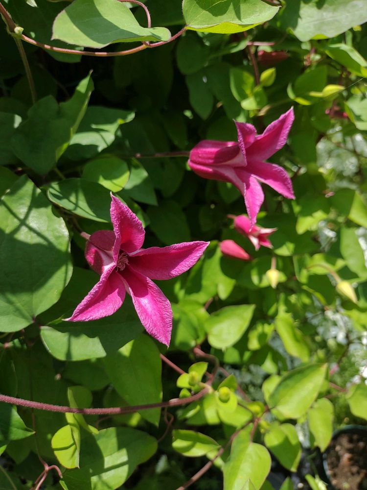 伸び盛りの時に、誘引を頑張りましたが、ツルが細く柔らかいため、なかなか上手く行かず断念🙄