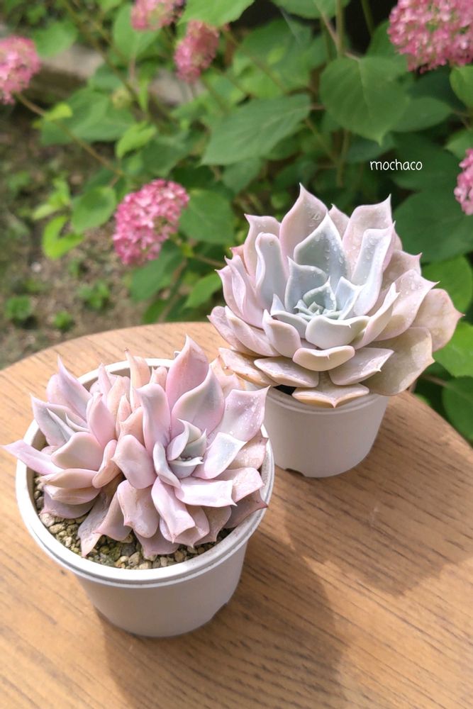 色味がぱっとしなくなった多肉の中で可愛いピンクだった2つ🥰