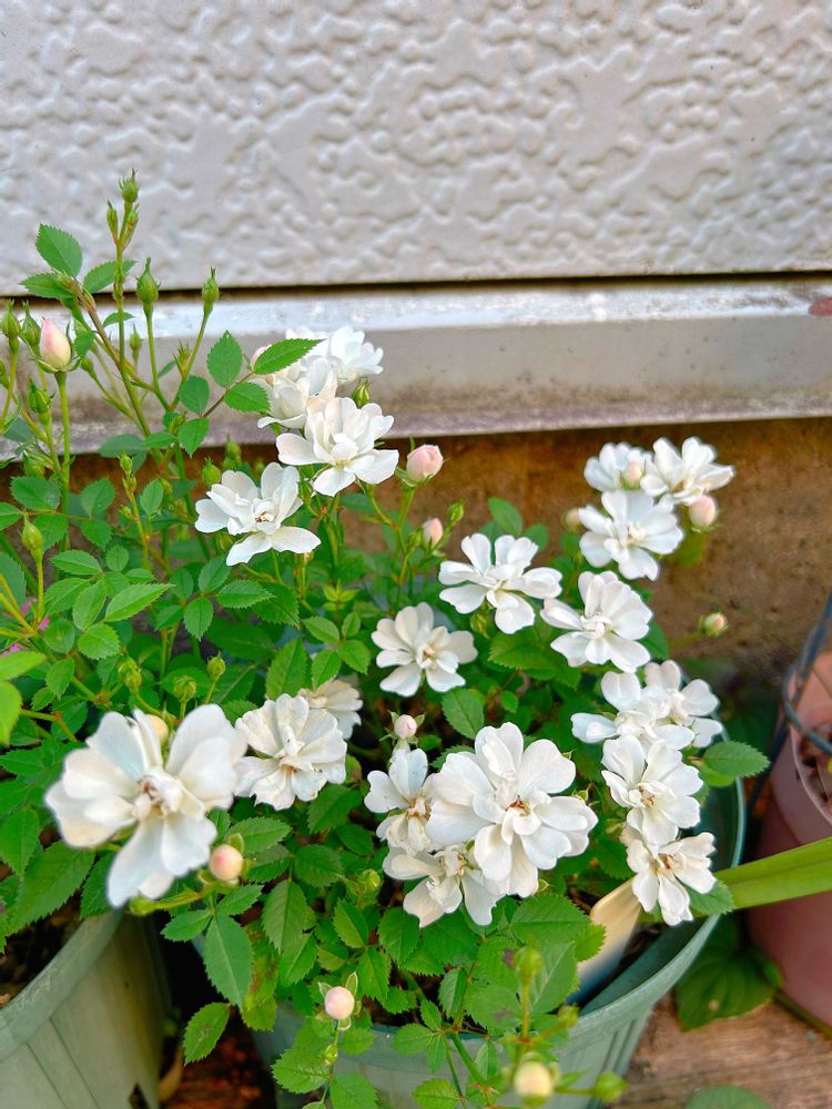 ⑦ 『レンゲローズ白』こちらも古株さん。こちらもたくさん咲きそう
