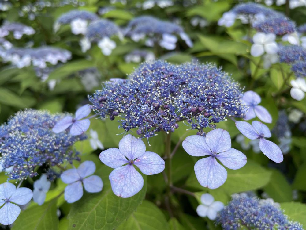 ⑤今日、公園にて咲いていた班入りのガクアジサイ🌿白っぽく写っていますが、実際の装飾花は薄紫がとても綺麗でした💜
