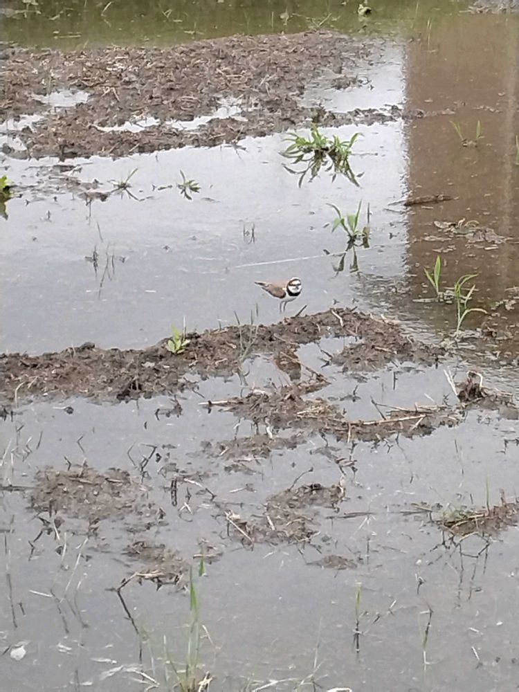 田んぼにはいろんな🐦️鳥が来るんですがコチドリはお初で、あわててスマホ📷😅