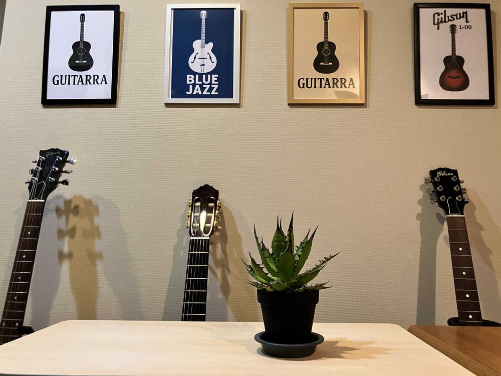 だいぶ大きくなったので、少し引きアングルでお気に入り🎸たちと共に📸