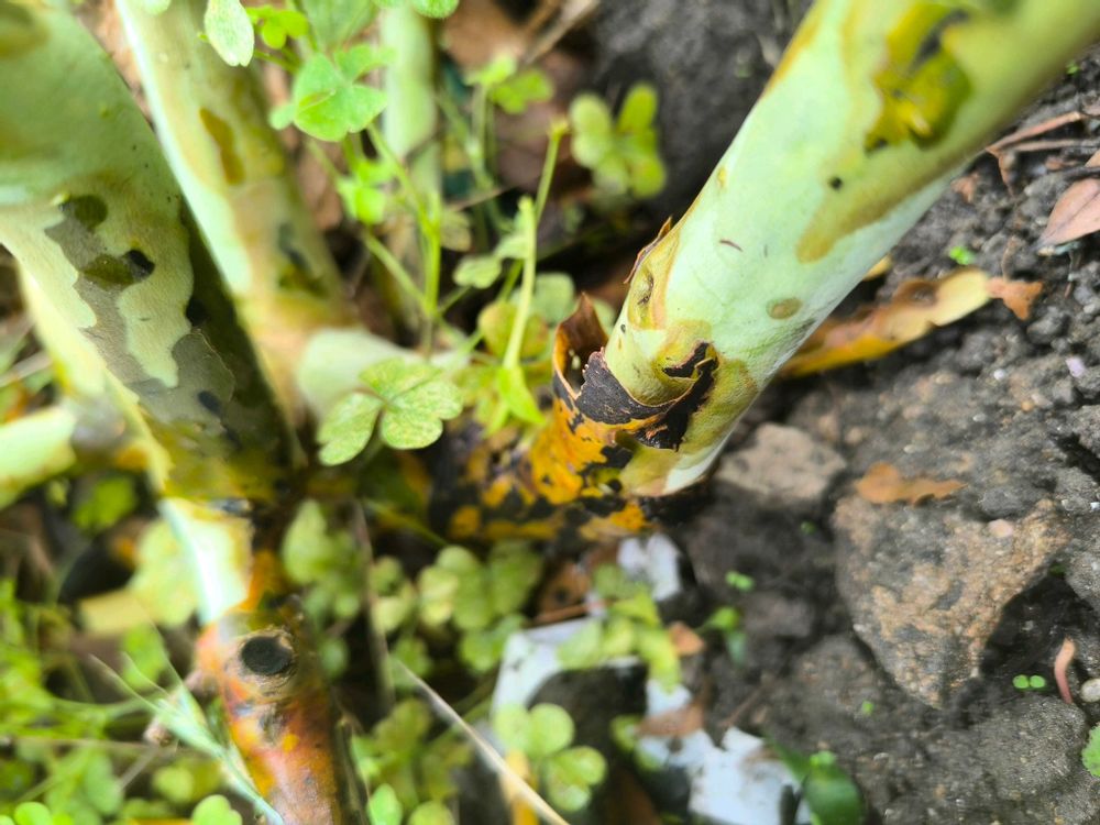 ①セレージャの幹肌。親木になってきたら幹の表面がカサブタみたいに剥がれる様になる模様。多分これから毎年この時期になると表皮が剥がれるんだと思われる。黄色っぽくなった皮剥ぐと薄緑色の幹が現れる。