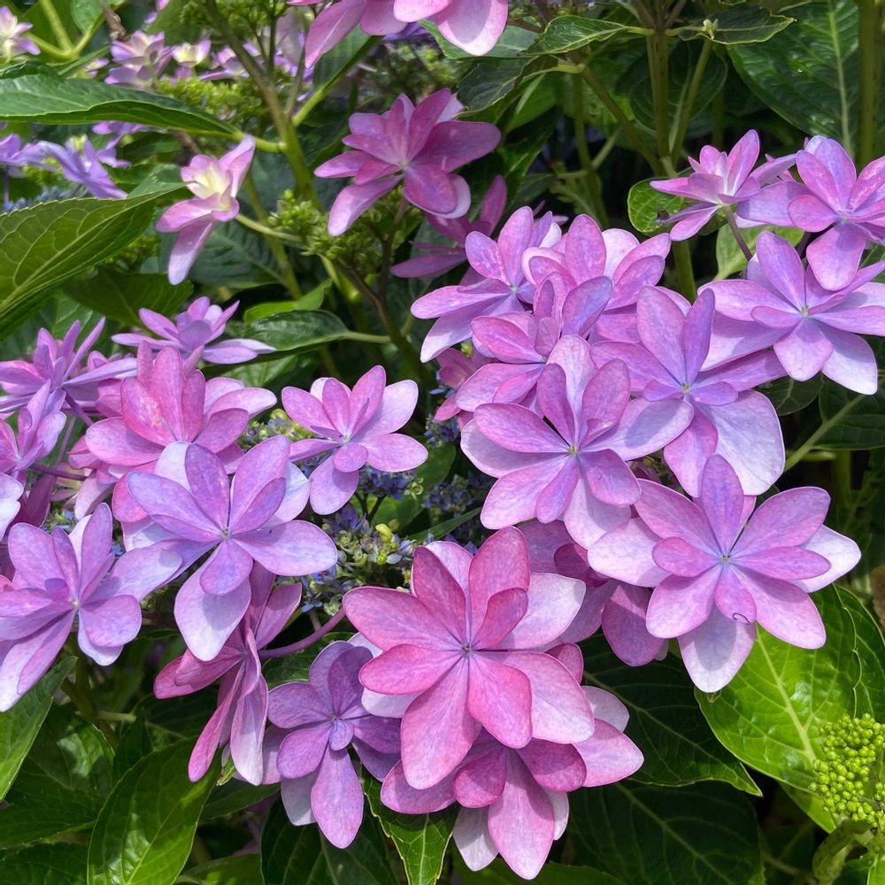 ガクアジサイとアメリカのアジサイの交配で普通のガクアジサイより装飾花の数が多いのが特徴のようですね✨