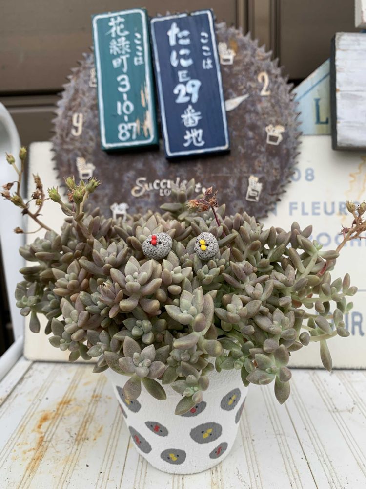 オジゾータンリメ鉢にジェイスタロック錦をINオジゾータンが同じく遊びに